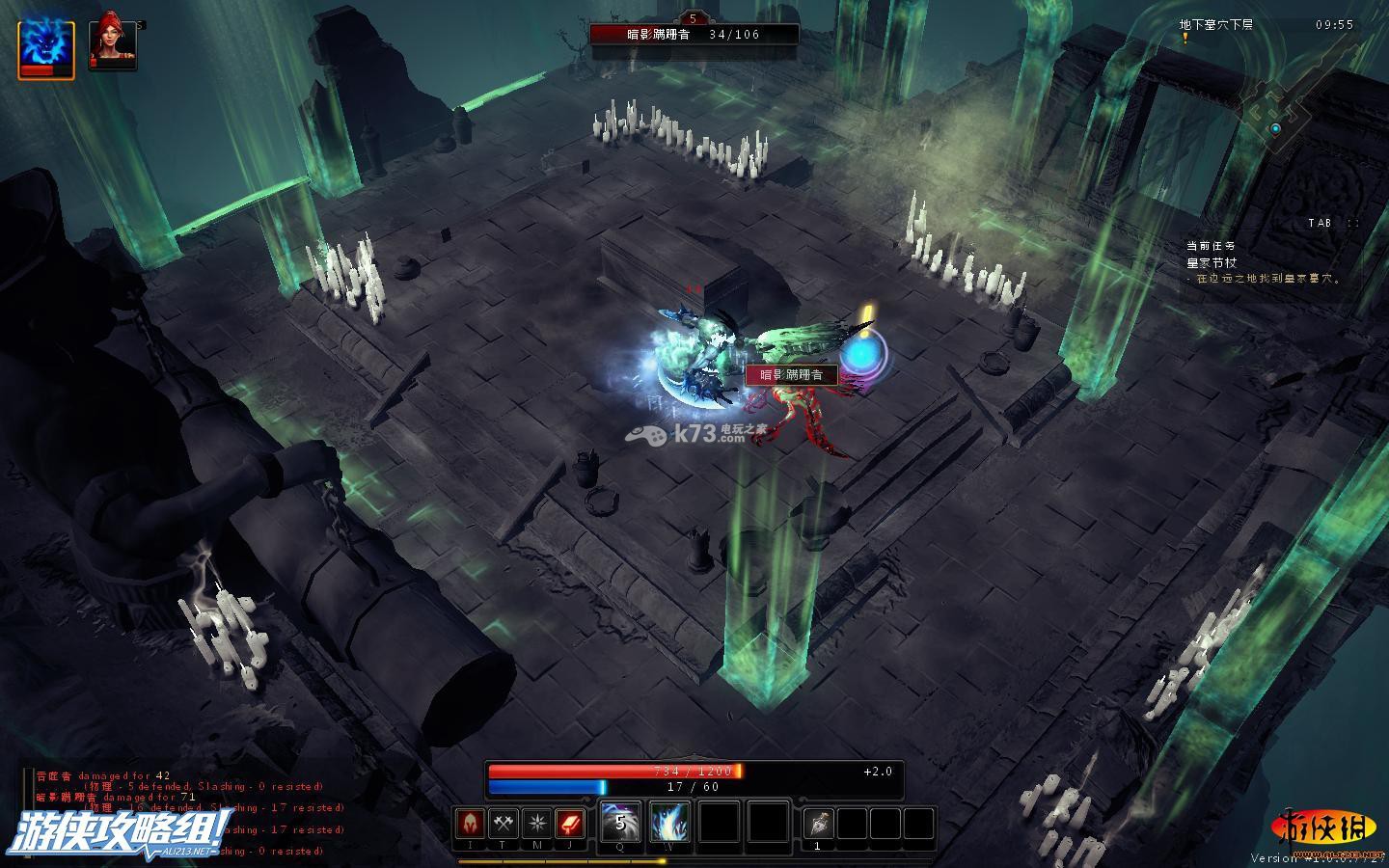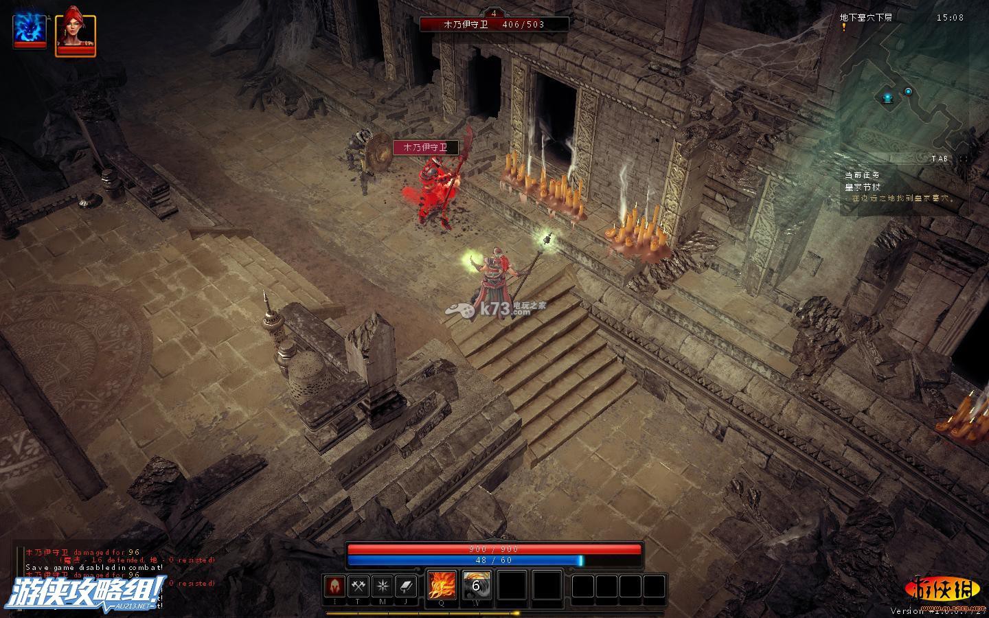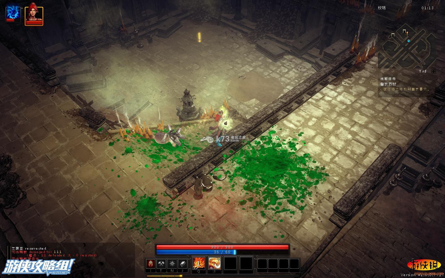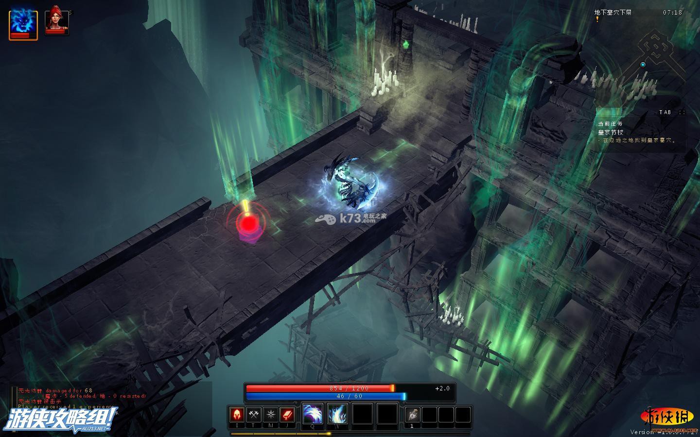 不得了,被打残了,这里需要注意的是守护者的远程攻击方式,地上形成个圈圈,若你在圈圈上,之后并会重伤你,因此,对付这种怪,只要巧妙的绕过守护者的圈圈。在适当的用我们自己的节奏攻击它就可消灭。