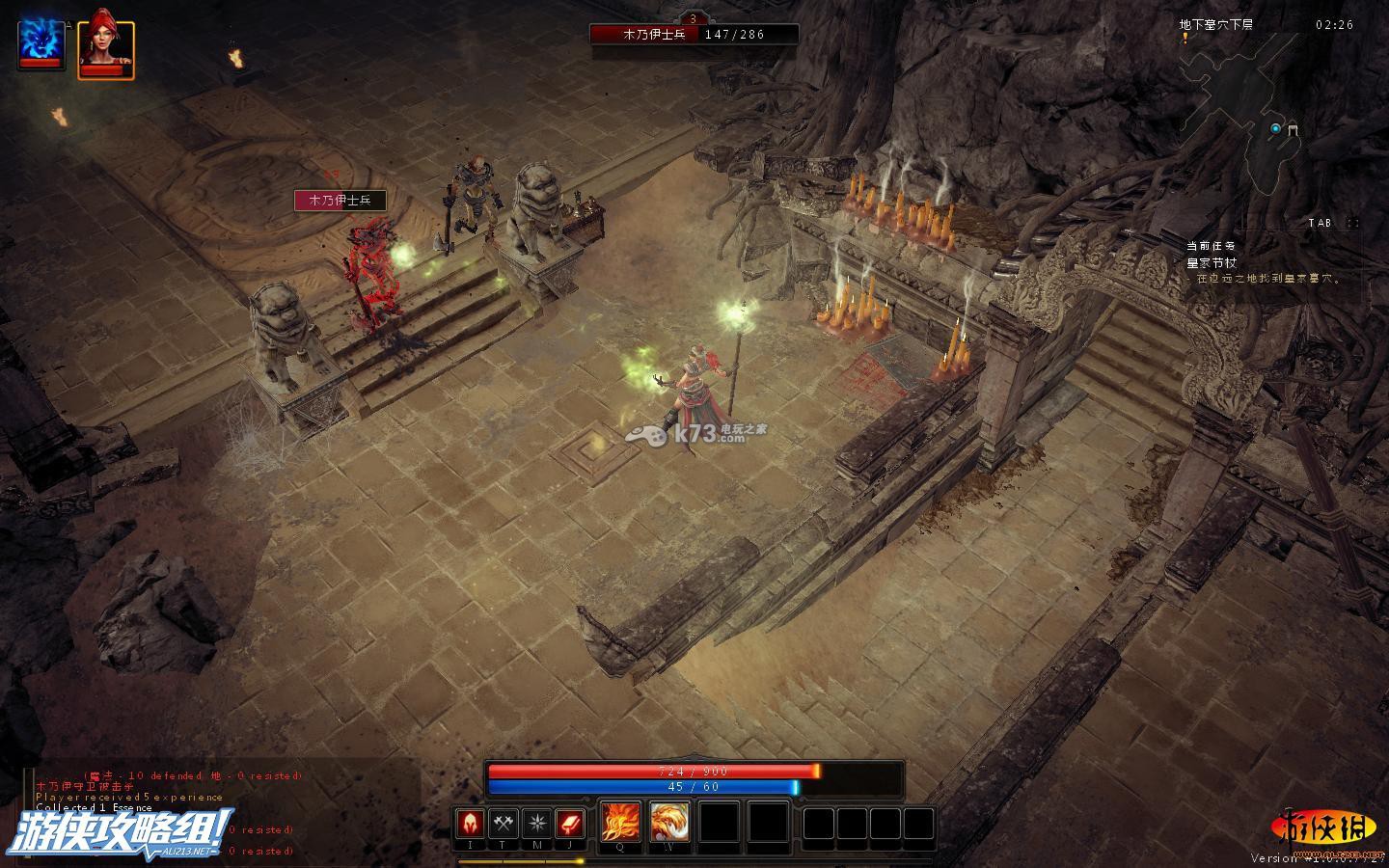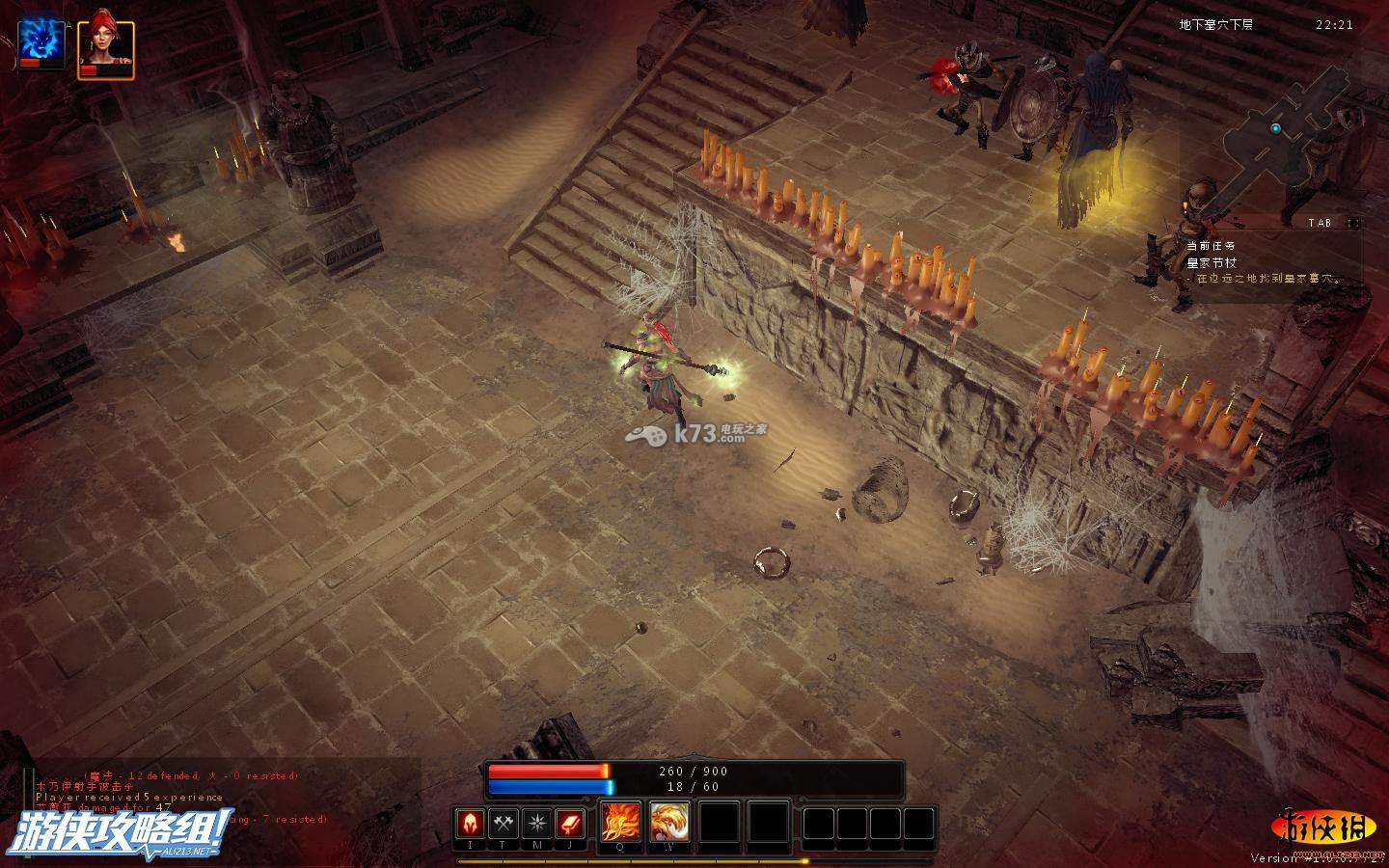 进入了下方的墓室,首先迎接我们的是手拿巨斧的骷髅兵,法师和弓箭手对付这种怪,基本可以不伤血,骷髅兵的移动速度慢,我们可以拉开距离,使用普通攻击,慢慢射死。