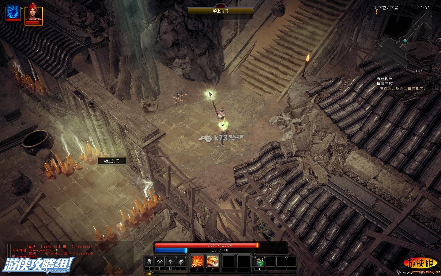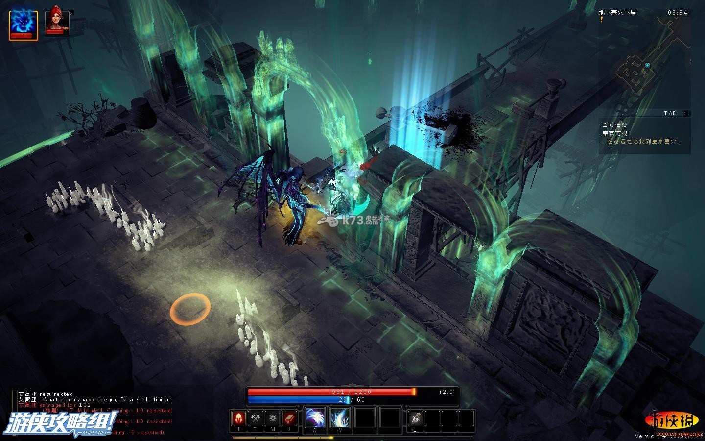 触碰下下方艾薇尔前面的塔,就可以触发机关,开启下一层墓穴(没血的可以到城镇的暗影世界的传送点进行回血)。
