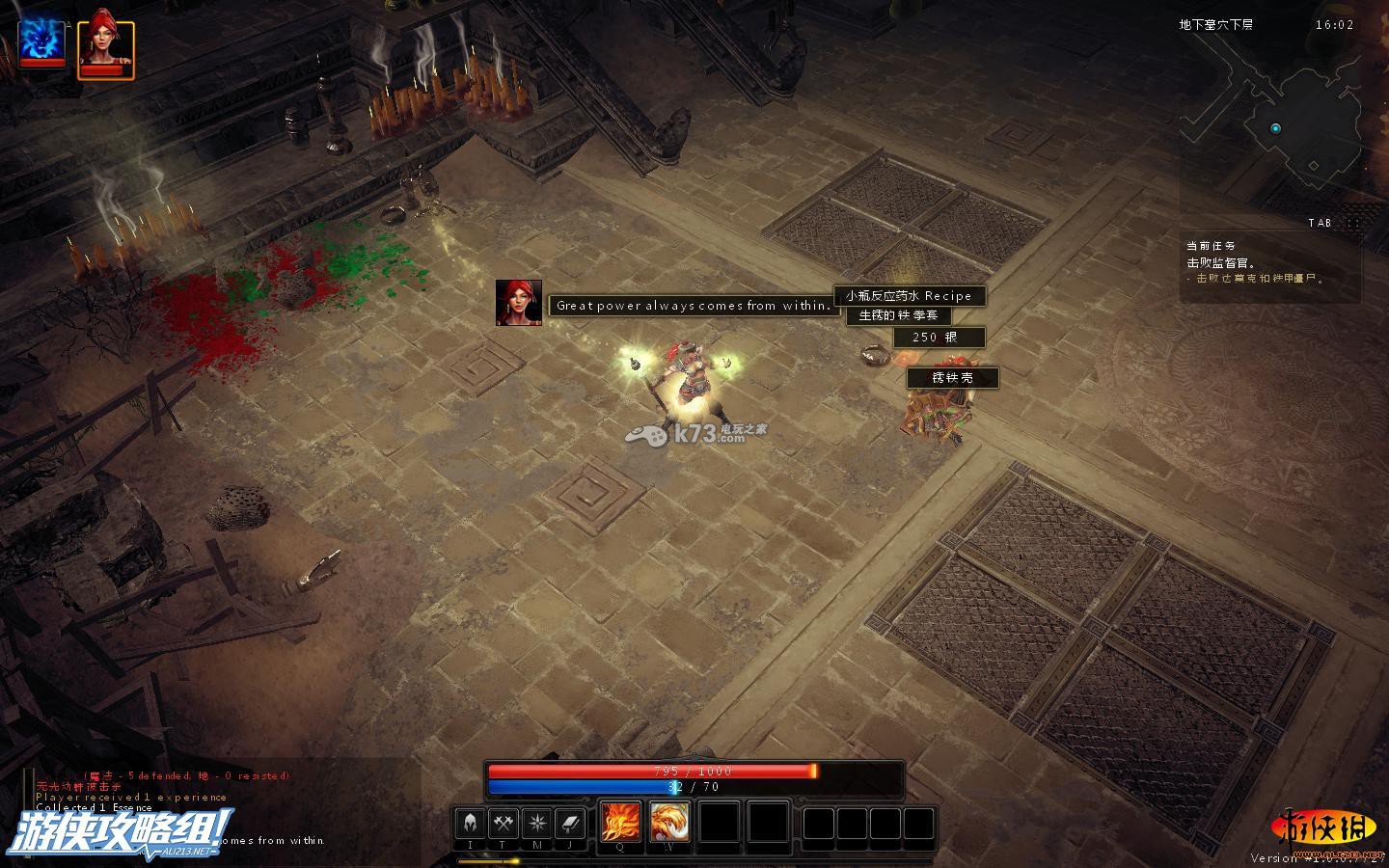 接下来到我们的目标点,这之前,要在暗影模式下寻找下BOSS的房间有木有装备,有的,直接带走,到了目标点之后,这时,我们把背包内铁皮僵尸掉的装备还回到我们的铁皮机器人的身上。在按D切换成铁皮机器人,才可以敲碎我们目标点的圆铁门。