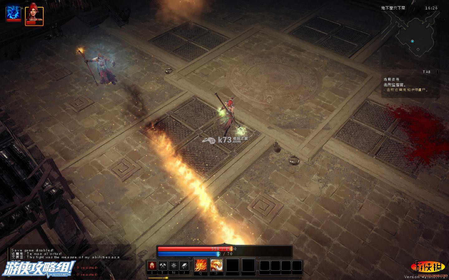 躲避监督官放出的火球,对监督官进行远程攻击,一点点减少监督官的血。这里攻击的时候,还要注意地面上的四个出火口,我下面站在的就是其中的一个。最好不要站在上面,否则会被定时喷射的火焰伤到。