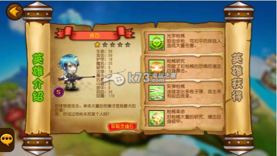 输出狙击手诗乃:强大的后排单体DPS,两个被动技能增加自身暴击和破甲效果,平砍攻击非常实在30级技能附带吸血效果背水一战不再不是难题,大招可直接攻击中后排敌人伤害高的没话说,荣誉商店、积分商店有售碎片收集起来还算容易,有钱