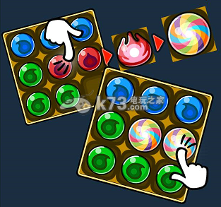 PS:两个毛球碰一起会成长为彩球,两个彩球碰一起会发动Combo