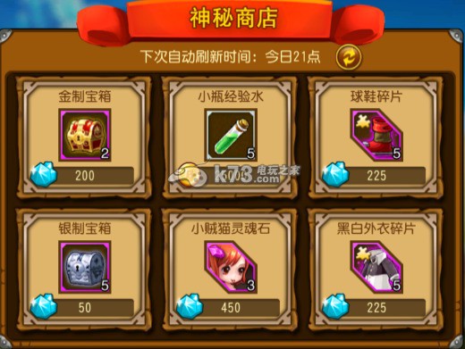 游戏内有多种商店供玩家使用。商店内出售各种道具、灵魂石、装备、装备碎片。