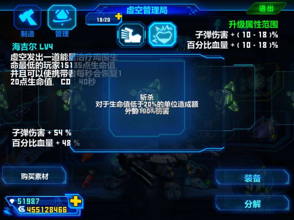 洗练次数越多越容易洗出后面的技能。当然基础属性的加成也大!一个顶级的虚空能帮你吊打同级同转生的人。当然属性加成和技能的配合是至关重要的。到了转生7段。需要的是一些顶级的单挑虚空。比如专门用来对拼双子星火箭筒的虚空: