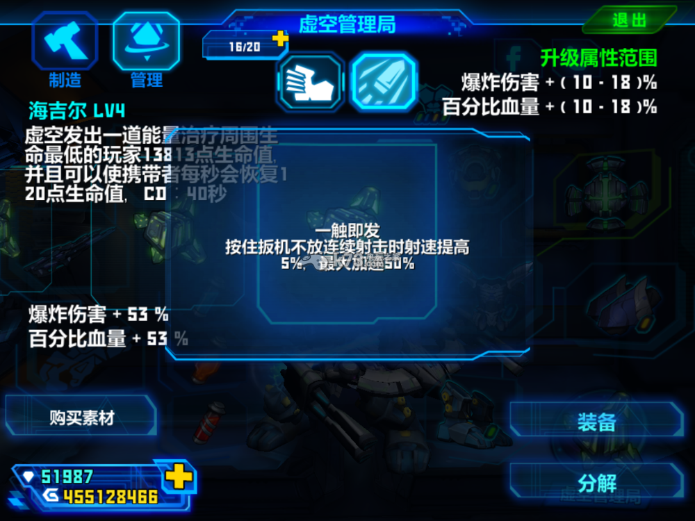 加53%的血量和爆炸伤害。让我在对拼时完全站得住而且输出也恐怖。同时技能是加速度和加射速。这样我的输出和闪避都是不吃亏的。这样就能在双子星对火中占得绝对的优势地位!这是转生7段高玩要考虑的