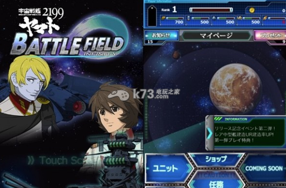 《宇宙战舰大和号2199:无尽战场》(宇宙戦艦ヤマト2199 BATTLE FIELD INFINITY)是小日本Yamato Crew游戏公司刚制作完成并上架的一款模拟战略手机游戏,游戏采用提同名动漫,在日本动画界有着元祖级作品称号的《宇宙战舰大和号》是上世纪70~80年代的一款作品,对于这样一款已经全部完结的游戏作品,终于在12年的时候更新了全新的《宇宙战舰大和号2199》。