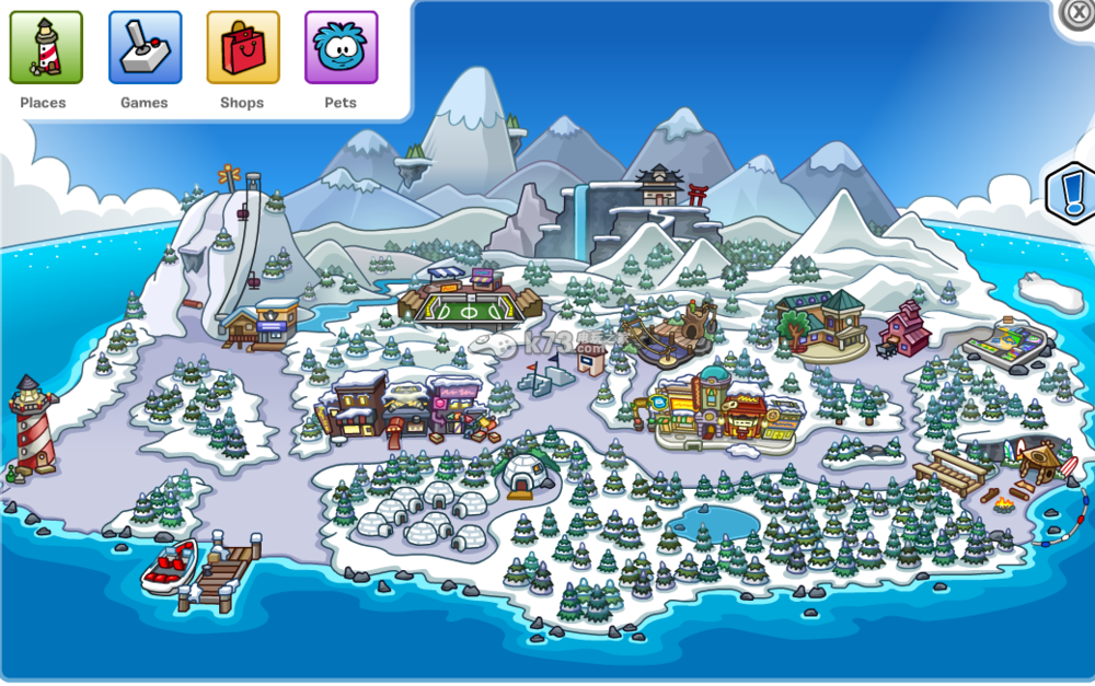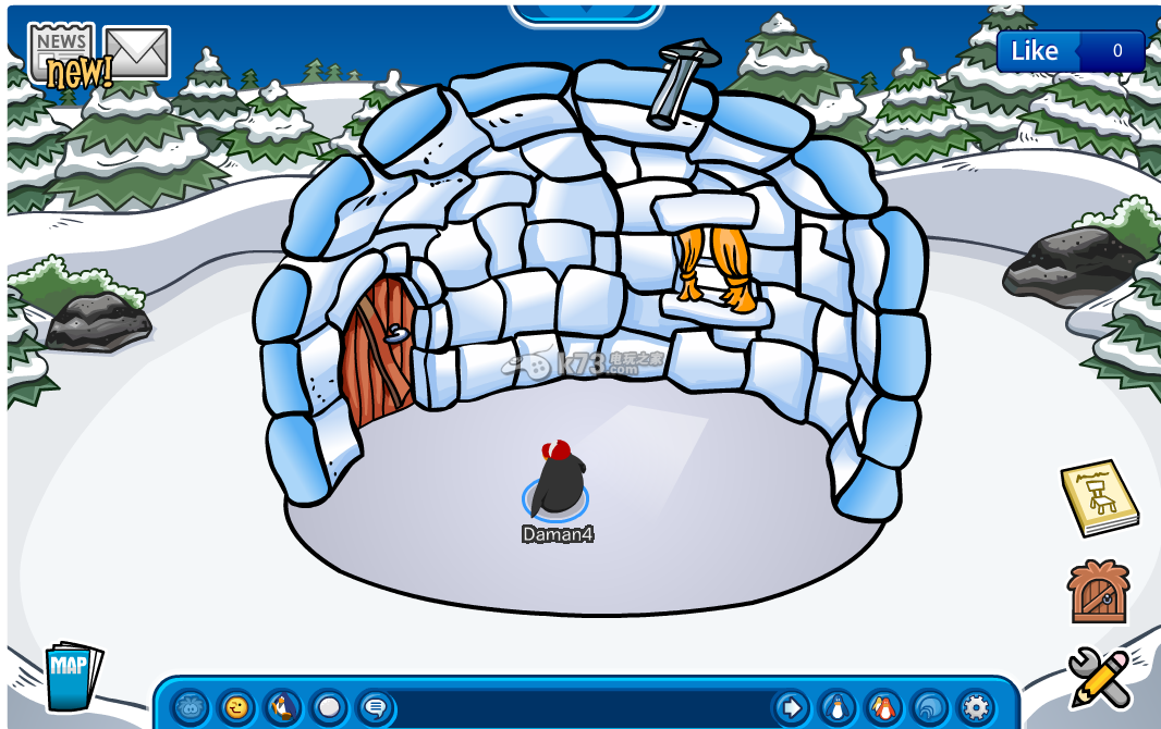 每个企鹅都有一个小屋点击右下角最后一个可以装修,倒数第2个是个给宠物的小院子,倒数第3个是买家具的,不过非会员无法购买,点击功能栏(蓝色的)右边的倒数第2个可以进入小屋。