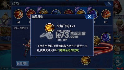 火焰飞轮的介绍是飞出多个火焰飞镖,追踪敌人所在之处注意击毙,使其无法闪躲(飞镖具有追踪效果)。这是下一个解锁的技能,此为神技,不论是论在副本的战斗中还是竞技场。副本贫血时,这个远程技能会帮你保持连击数,进行远程消耗。最后出现的大型飞镖也会对敌人造成一定的硬直。所以在竞技场中只要拉近了距离就可以使用,缺点就是距离略短,大约只能跨越2/3个屏幕。