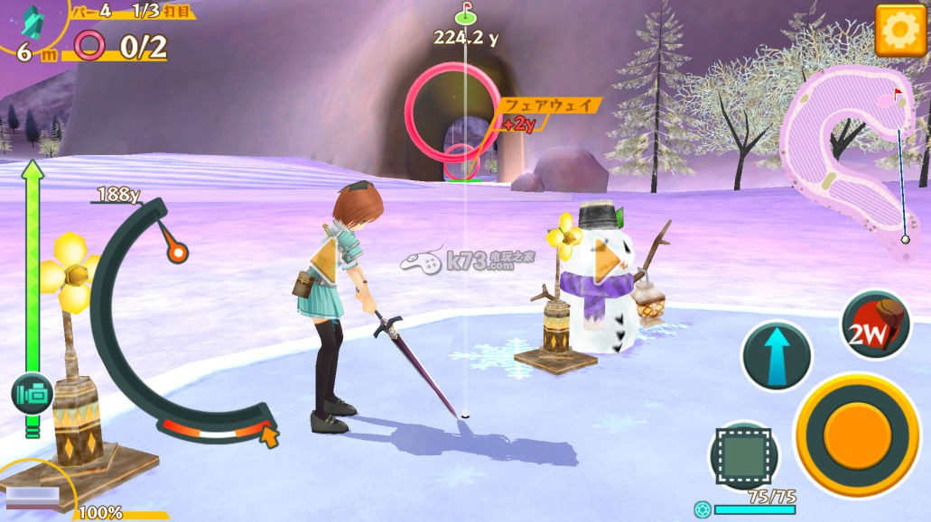 击球的瞬间,左下角显示出该次击球的力量 % 数,开球固定 100%,但之后的地形就都不一定了,增添许多有趣的变数,也能避免魔法飞球上计算派独大的现象。