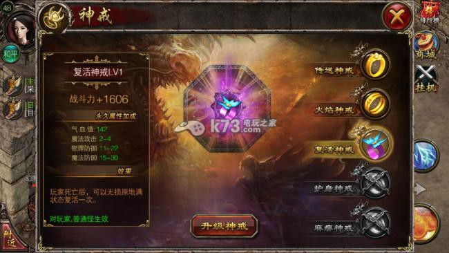 复活神戒签到7天可激活,获得神戒技能:复活(原地满血复活)