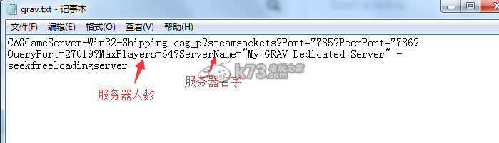 MaxPlayers=64?allowpvp=0?ServerName="My GRAV Dedicated 'Server" -seekfreeloadingserver