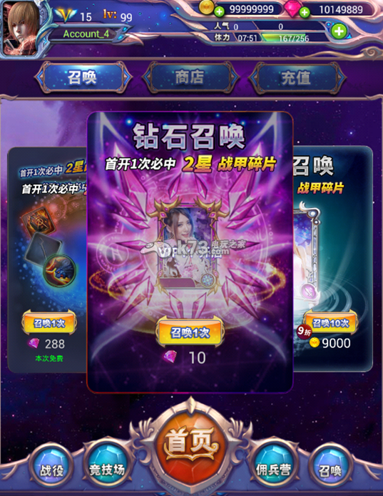 每次战斗之后有10分钟冷却时间,可花费钻石消除冷却。