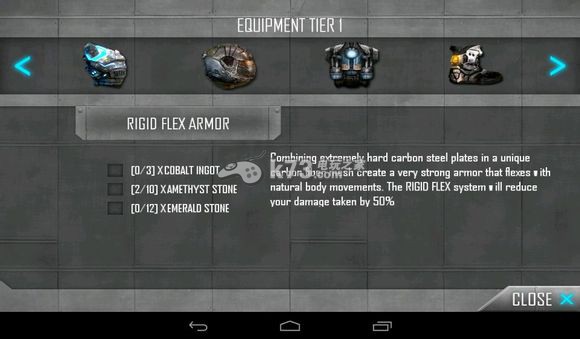 装备 从左往右依次是盔甲 背包 喷射器 鞋子,第二个是,头盔,升级会扩大视野