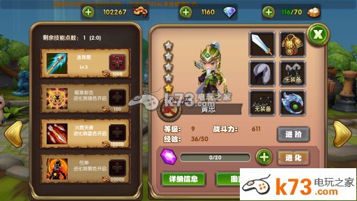 看见黄忠的属性和技能后,如果有人喜欢黄忠可以通过对应的精英关卡、商城、活动等途径收集黄忠之魂将他进化。