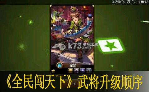 《全民闯天下》平民玩家专心培养1-2个武将已经很不错了,所以不能像之前说的那样双奶等一起养,下面带来武将升级顺序推荐,希望对大家有所帮助。