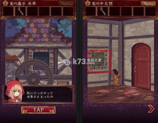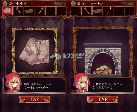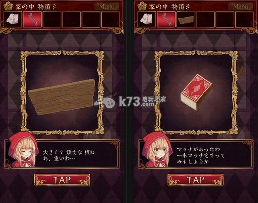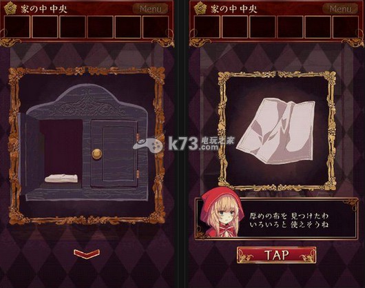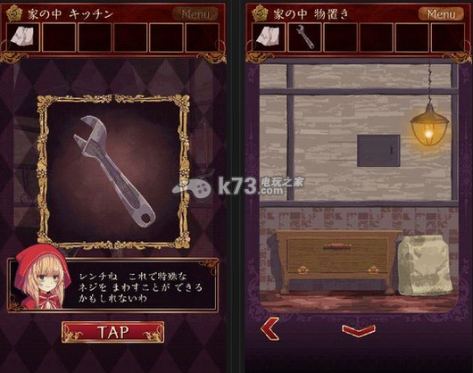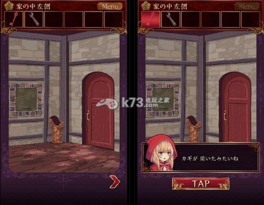 9、回到壁炉前,把盒子丢到壁炉中,盒子燃尽后,一把钥匙出现了,用这把钥匙可以打开如图这扇门,里面就是我们小红帽的狼外婆啦,剧情什么的日文不是很懂小编就不在这里乱翻译了,第六章扉の向こう就结束了。