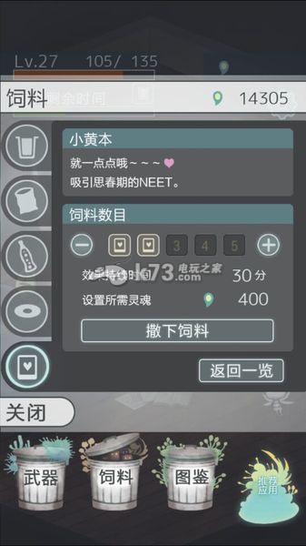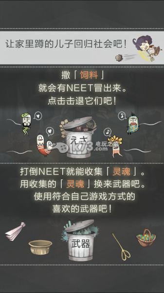 这就是二个选项,食物,放置各种食物和物品引诱NEET出来,然后教育一番~~~