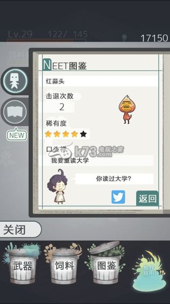 第三选项,图鉴的二分之一图鉴,记录各种NEET的形态。