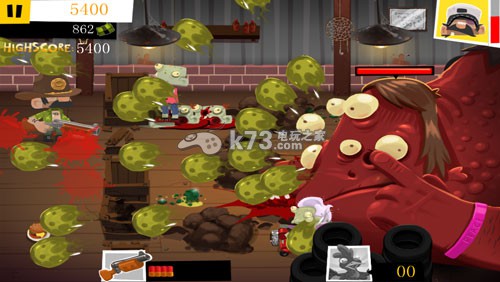 游戏画面偏向于卡通风格,不管是美国大叔的人物设计还是游戏关卡的场景设计,都让人看上去有一种看动画片的感觉。而且虽然游戏中虽然融入了暴力血腥的元素,但当大家看到甩鼻涕的僵尸boss和剔牙的僵尸小弟后,小编甚至感觉连死亡都不是那么令人难以接受了。
