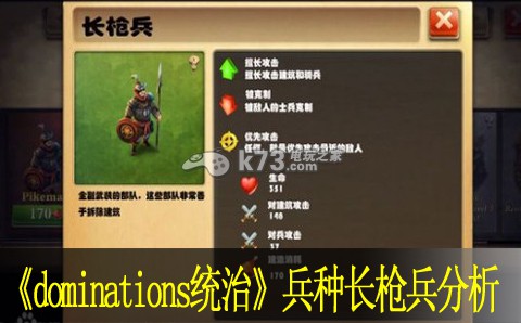 《dominations统治》因为个人这段时间时间与经验的关系,关于游戏中各个不同的兵种以及战术应用会一一慢慢更新给大家,今天这里就以长枪兵作为开篇之文吧!
