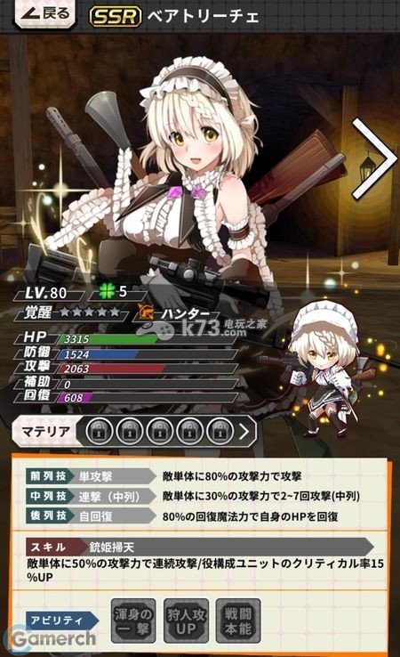 突突突妹,相信拥有她的都知道她是史莱姆的克星,但可能新人不知道她真正牛逼之处,她的最佳位置是在中排,超高的辅助数值不说,还能在前面有肉盾的情况下进行攻击(因为是枪系),一个既能辅助,又能攻击突突突的角色,你怎么能不刷她!