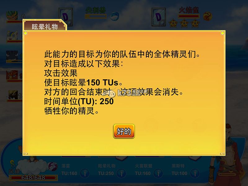 比如这个叫做【眩晕礼物】的技能,简单来说就是牺牲掉这个怪物,给所有的队友加上一个必定击晕的BUFF