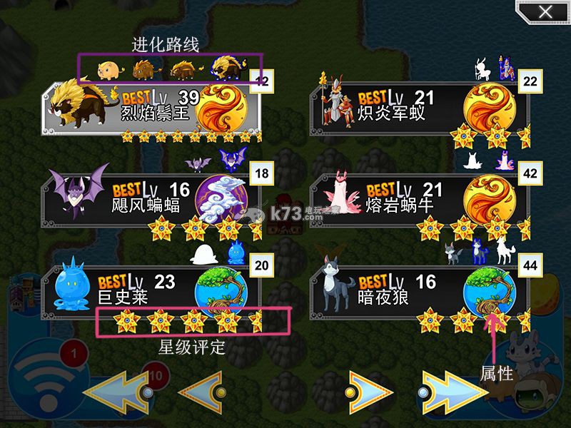 但是和口袋妖怪不同的是,怪物的技能都是固定的,不是自己领悟然后替换,加上怪物的星级和评价就直观的摆在那,所以看到高星级的或者高评价的就可以抓了,当然,这些怪物大部分是可以进化的
