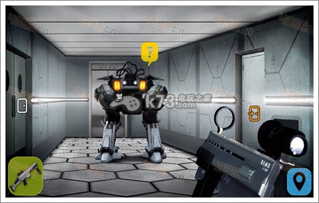 14.出门,拿着枪,就能把挡在前面的机器人给轻松干掉。拿到一个芯片板。