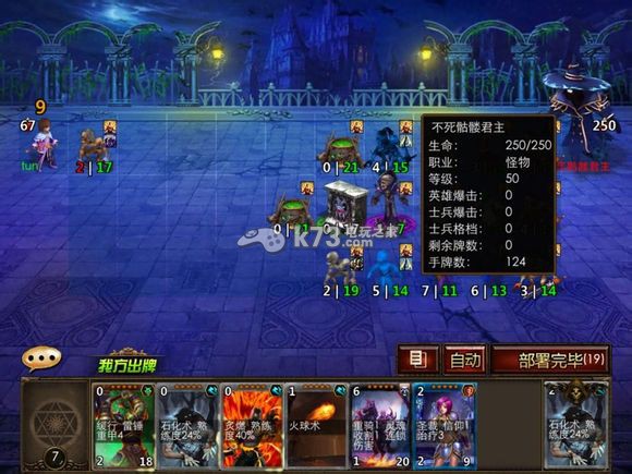 由于我前面介绍的电脑有60多张红色技能,也就是说在耗掉对方技能下 上任何卡牌逆天英雄也是会被电脑杀掉的。所以不建议在消耗掉电脑技能前随意放兵,更不建议随意放兵打破封路的节奏,这也是这副本的一个漫长又枯燥的一个过程。