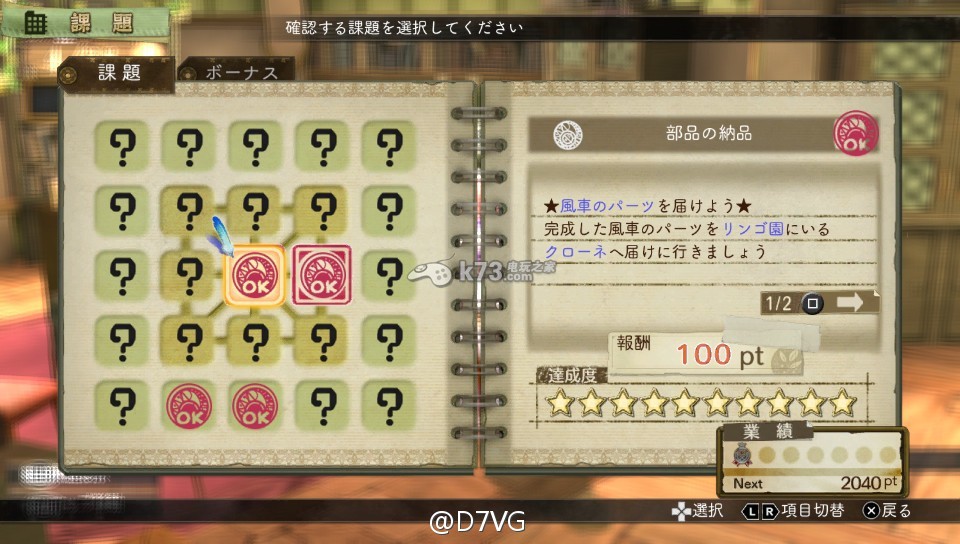本作最基本的游戏目标,就是在期限三个月之内解决所有课题。课题的种类有很多种,像是「调和出指定的物品」或「打倒怪物」等,但是首推解决的课题就是与主线剧情相关、位在中央位置的课题。不尽快解决跟主线剧情有关的课题的话,就会进入坏结局!