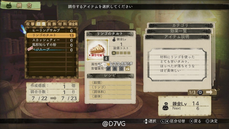 利用调合量产物品 到下一期开始之间,建议使用从课题或在自由时间获得的素材,量产能在战斗中使用的物品。随着故事的进行,课题的难度也会越来越难,因此请务必在下一期之前准备万全、然后享受冒险的乐趣。
