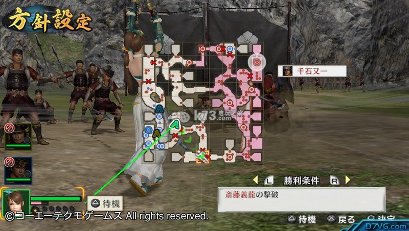 然后系统又给任务了,换回妹子干掉千石又一。这时候叫电脑给「前田利家(前天例假?)」跑路去。跑到最上方的红点那。