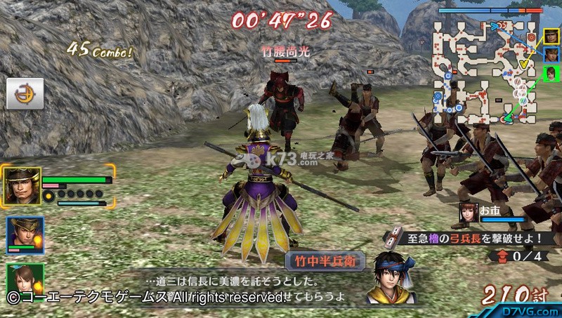 干掉千石又一之后继续南下,去找另外几个大众脸带名字的武将。这时候系统又会给你任务,干掉4个带名字的武将。推荐换到「前田利家」去打。