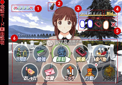 2 各角色象徵的图案,当累积好感度到达满格开始跳动后,就可以执行"attack"