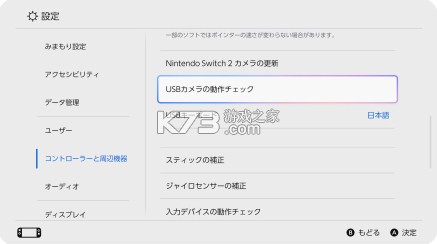 把USB摄影头连接至Nintendo Switch 2上方的type-c接口后,打开你的switch2主机,在HOME主菜单界面的「设定」内的「检查USB摄影头的运作」简单地确认你的第三方摄像头是否能够正常使用。