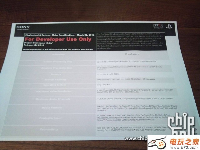 今年E3也许我们不会看到PlayStation家族的新主机,然而这不代表索尼在幕后没有进行任何准备。近日国外来源爆出了一张面向开发者的PS4配置单,含有硬件配置、上市时间等信息,不可谓不是猛料,下面就让我们来看看。. V3 F& B: y1 Y; C+ s% Y& V1 i6 a
