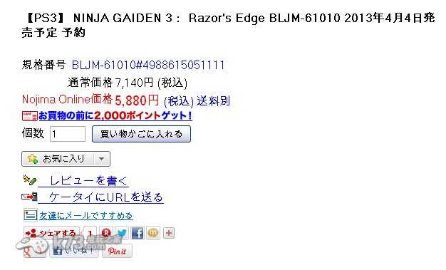 日本零售商上架的PS3《忍者龙剑传3 刀锋边缘》页面截图: