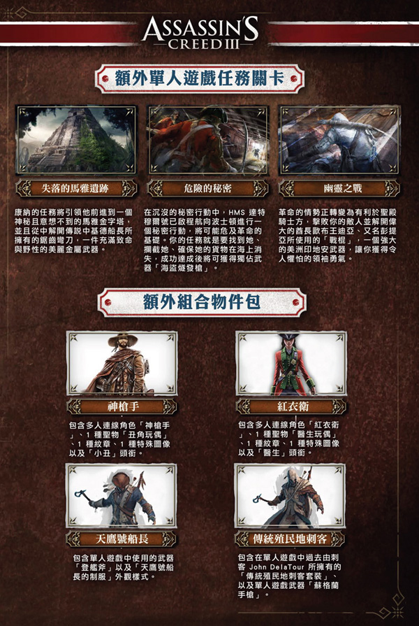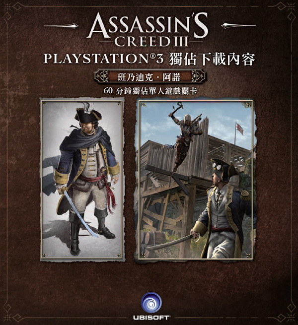 PS3《刺客信条3》繁体中文版同梱主机独占内容公开