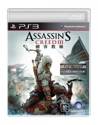 SCET今日宣布将于2012 年11月20日在台湾地区推出PS3动作游戏《刺客信条 3》繁体中文版与新型 PS3 主机同梱的刺客信条3 繁体中文版PS3同梱组,建议零售价9480元,10月31日起在台 索尼加盟通路开放预购。