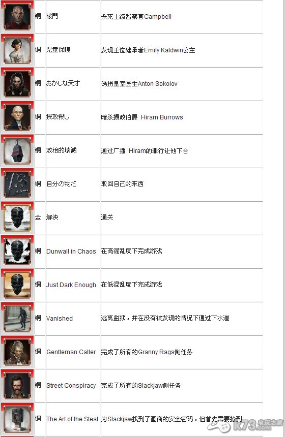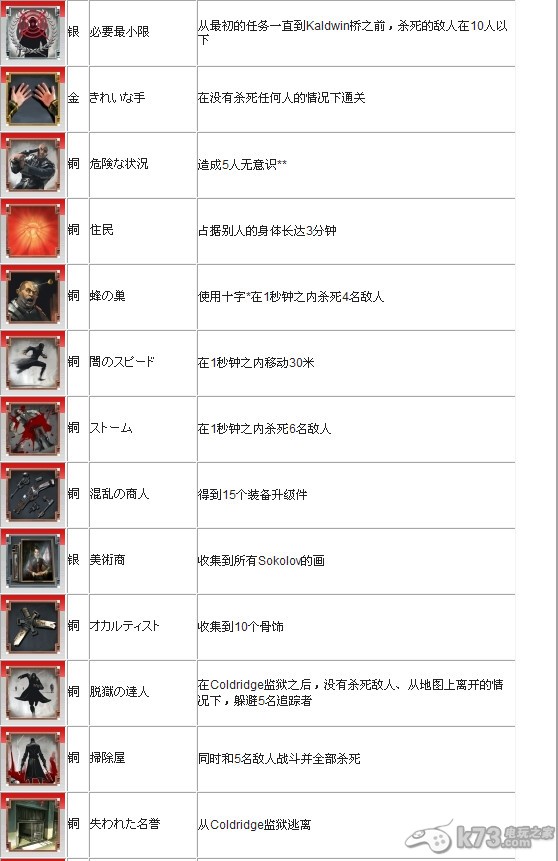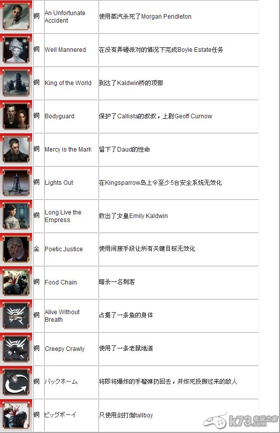 作为一款原创的动作类游戏,《耻辱》这款游戏以其独特的风格和出色的游戏自由度获得了众多玩家的好评,游戏也获得了一个非常不错的销量。本作当然也会对应PS3的奖杯系统,下面就给大家带来本作的全部奖杯的获得方法。