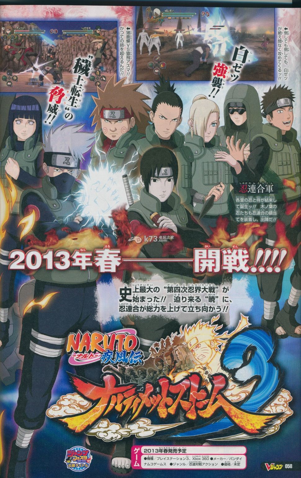 本周的fami通杂志图上,NBGI公布了家用机《火影忍者疾风传 究极忍者风暴3》的全新杂志图情报。第四次忍界大战终于将在本作中爆发了,这次又会有哪些角色会复活呢?