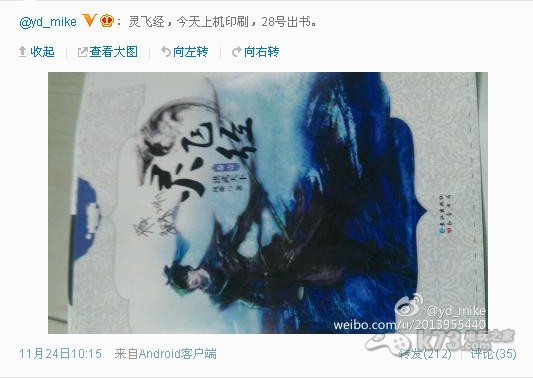 本月24日,凤歌大大在他的新浪微博上发表日志表示其最新作武侠小说,也是其【山海经】的最后一部巨作《灵飞经》将会在28日正式发售纸制印刷版。今天,凤大第一时间在微博上公布了纸制版的封面。