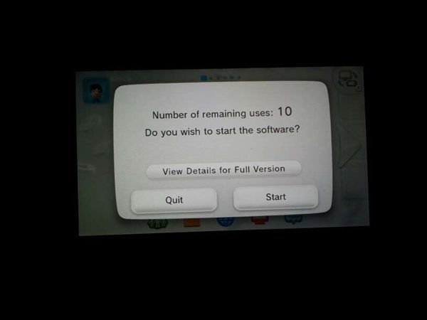 Wii U主机购买者注意了,本机和3DS的DEMO一样DEMO也有次数限制,如下图,前不久发售的足球游戏在WIIU上只允许玩10次。