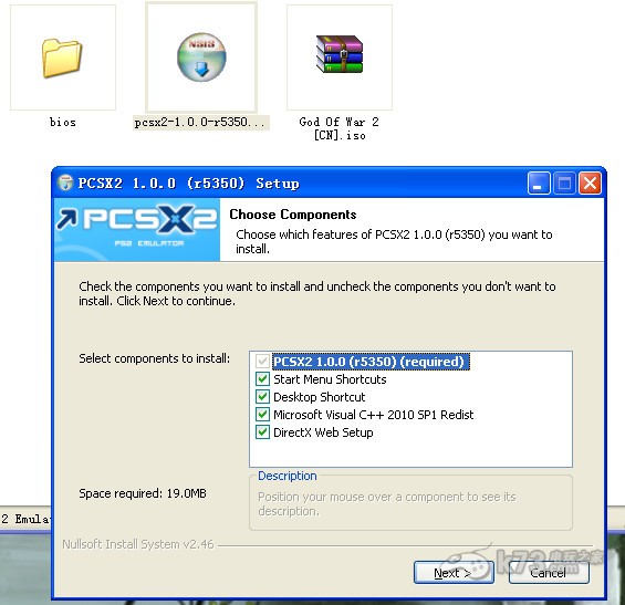 1.先下载上方链接里的模拟器和bios资源,解压后安装pcsx2-1.0.0-r5350-setup.exe,模拟器的安装目录随意。注意:模拟器安装的最后两项是运行模拟器所需要的必要环境,推荐不要取消。前两项是创建快捷方式,推荐全部钩选 。