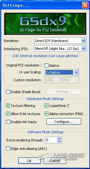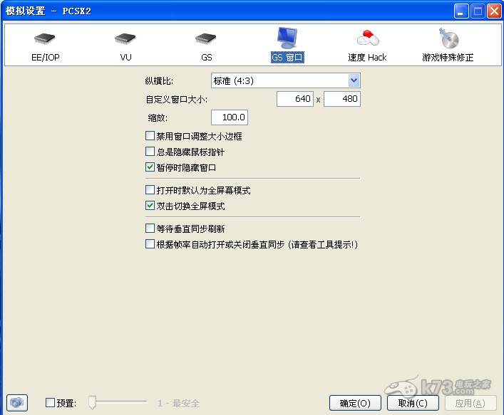 9.”GS窗口“是对模拟器运行时进行设置的,玩家可以自定义窗口的大小或者使用全屏模式,还可以调整为宽屏电脑的16:9显示。