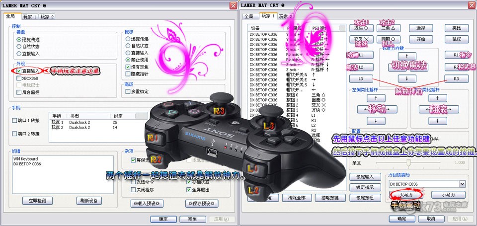 以《战神2》为例,手柄玩家可以进行如下设置。键盘控制的玩家可以在键盘上进行自己想要的设置。