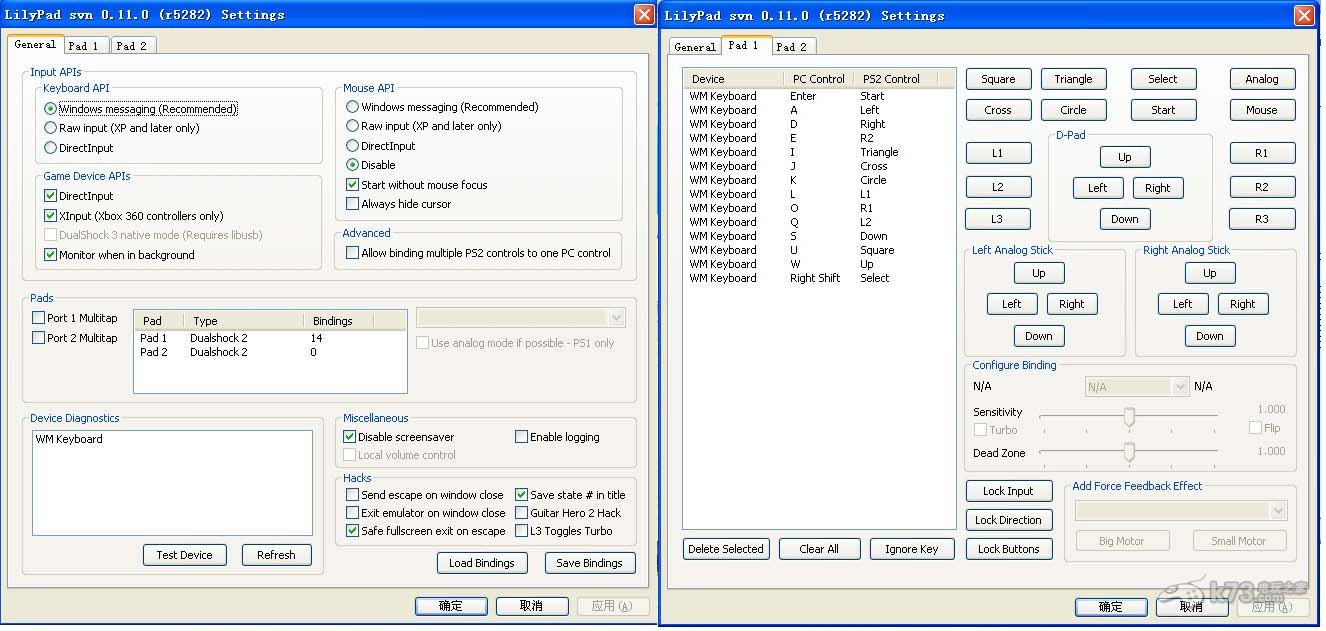 这一项主要是对游戏的画面以及游戏实际运行的速度产生影响的,各位可以根据自己电脑的配置进行自由选择,第一项”Renderer“可以不动,而第二项的”Interlacing“以及下面的”分辨率设置“会直接影响到游戏的运行速度。如果电脑配置低的同学建议将”Interlacing“设置为”None“,再把Original PS2 resoluting的”Native“前钩上,这样可以达到提速的效果,不过画面表现会差些,但是可以接受。