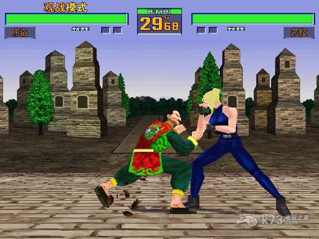 开场后多用1和2,多数能奏效。如果敌人攻势太猛,应该暂时撤退再用3奇袭。敌人倒下后就用4。要善用G防守,防得好敌人连段后都有空隙给你用投技。对两个摔跤人物时就不要用投技了,因为你被他拆投和指令投的机会远大于你投他,这是用1和2交替就能轻松搞定。