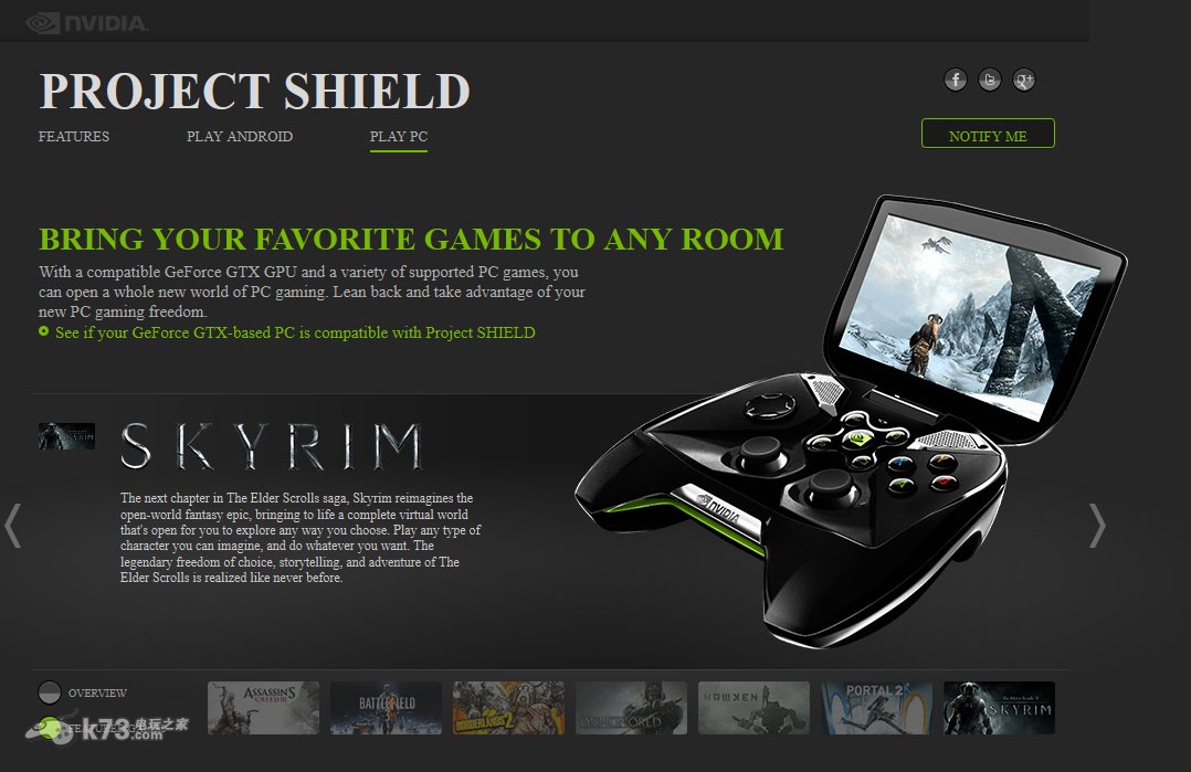 "NVIDIA公司公布代号"Project Shield"的安卓平台游戏控制器/掌上游戏机。Shield使用Tegra 4处理器。控制器部分类似于索尼PS手柄,还有翻盖控制的五英寸HD触摸屏幕,可以独立提供完整的安卓游戏体验。掌机内置SD卡插槽,附带HDMI画面输出。支持Steam的Big Picture运行PC游戏"